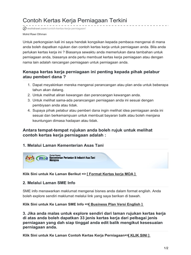 Contoh Kertas Kerja Perniagaan Terkini Pdf